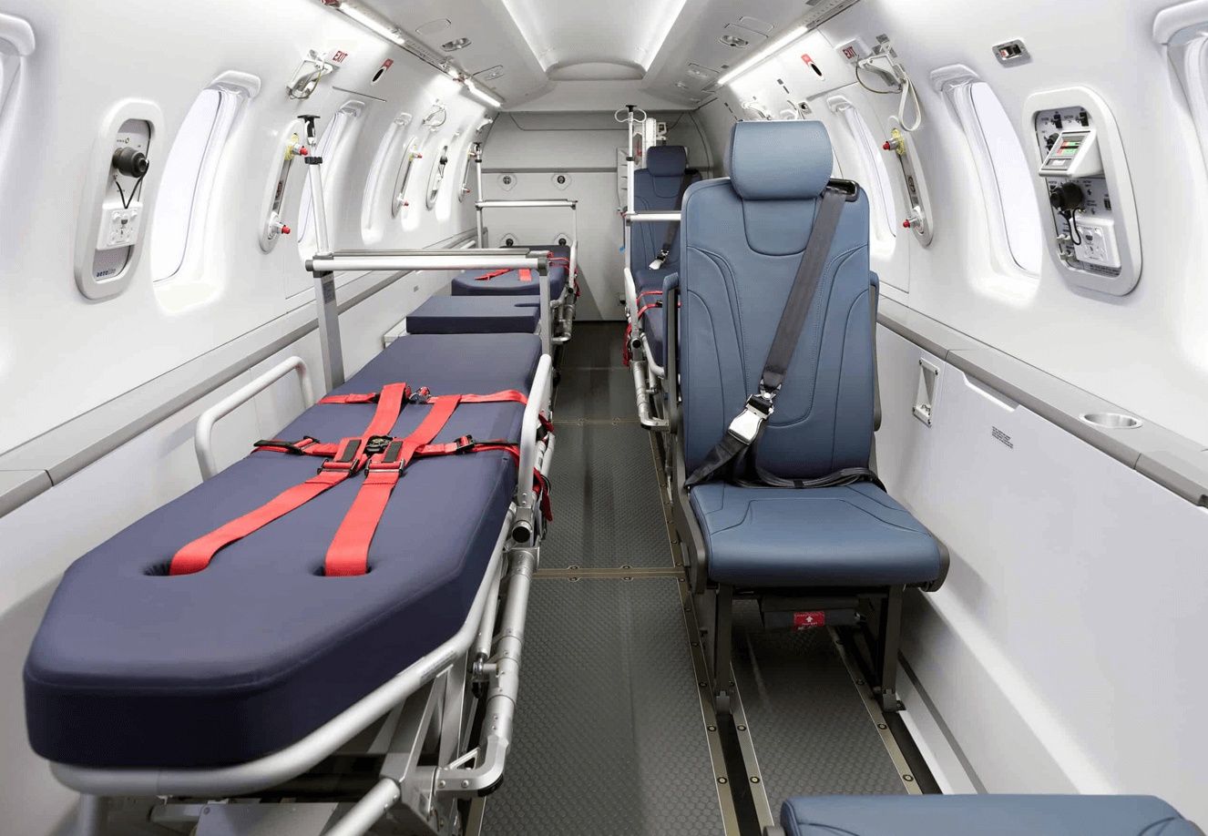 Well-equipped aircraft: fixed-wing or rotor-craft with ICU-grade medical integration (ventilators, oxygen supply, monitors).
